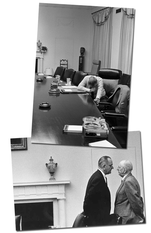 After failing to gain the Democratic presidential nomination in 1960, he was asked to run as the VP candidate with John F. Kennedy. After Kennedy’s election, Johnson was rendered powerless in the vice presidential position and sent on various trips to improve America’s appearance in foreign eyes. On November 22, 1963, Kennedy was assassinated during a visit to Texas. Two hours and eight minutes later, Johnson was sworn in aboard Air Force One to become president.