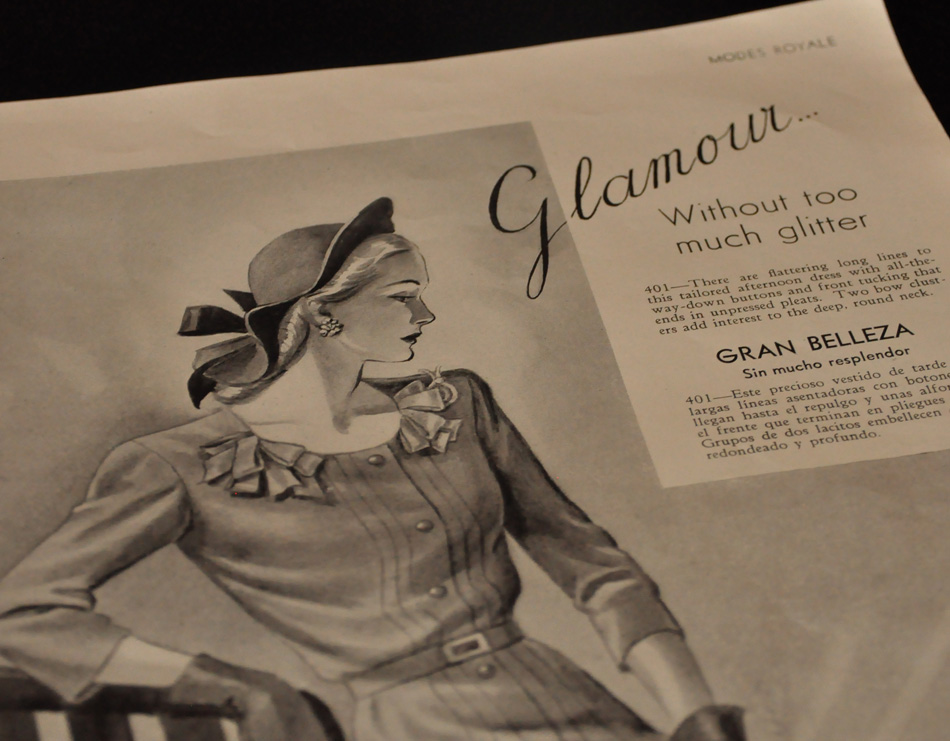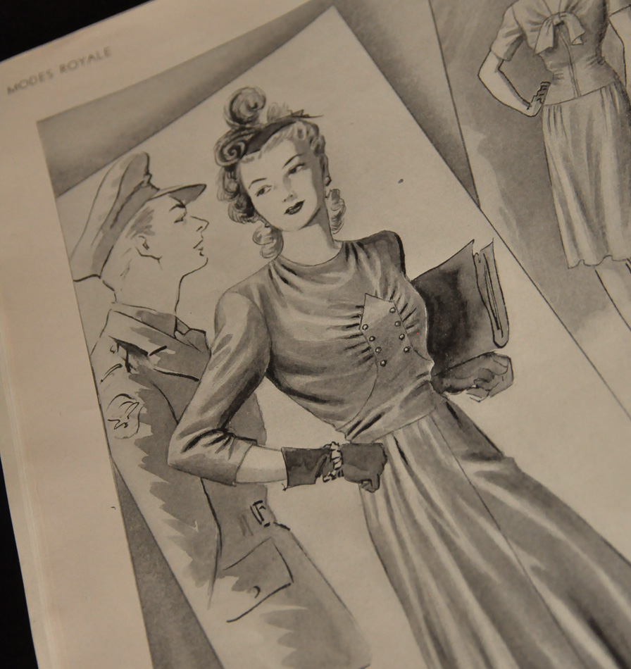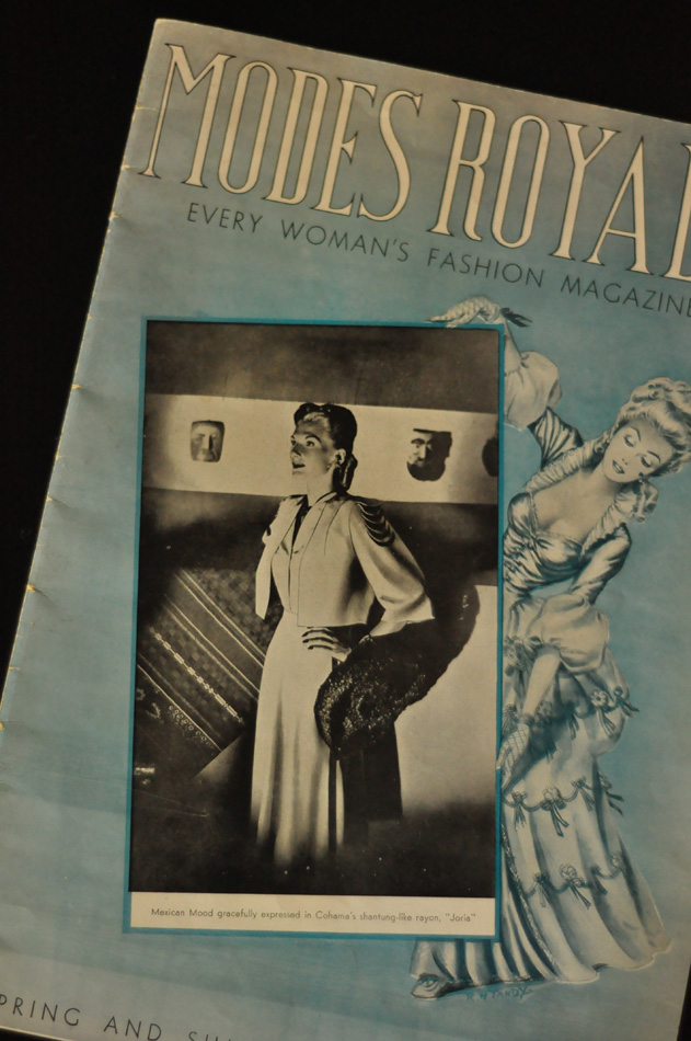 Every now and again an item will come into Antique Alley that simply screams my name. When my friend Alicia is working and those sorts of items come in, she often tucks them behind the counter for me until I am able to see it. And thank goodness she did that for this stunning pattern magazine from Modes Royale, dating to 1944.