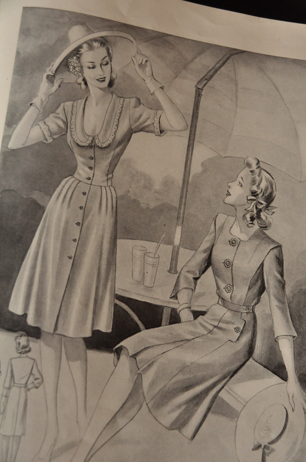 I really love the last dress on the left, with it’s beautiful scoop neckline and peter pan collar.