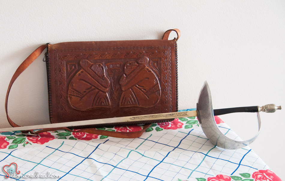 For once, I was nearly able to buy everything I really wanted to. I picked up a fencing blade, very similar to Zorro’s, a fabulous tooled leather purse (I know I have a ton, but this one is unlike any I’ve seen!), a Starburst vegetable bowl, my first head vase, and a large orange brooch which matches a smaller one that I was given. The brooch is by far my favorite piece. It just makes me smile, and makes me feel like I’m wearing a tiny bit of California.