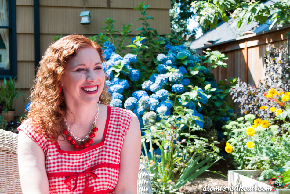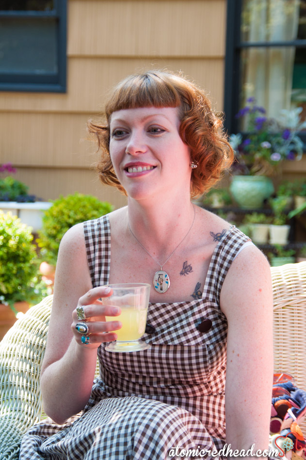 We all had a lovely time chatting about vintage shops, time travel, and how we handle non-vintage oriented parties. And we all giggled when we realized that everyone arrived in either black or red gingham.