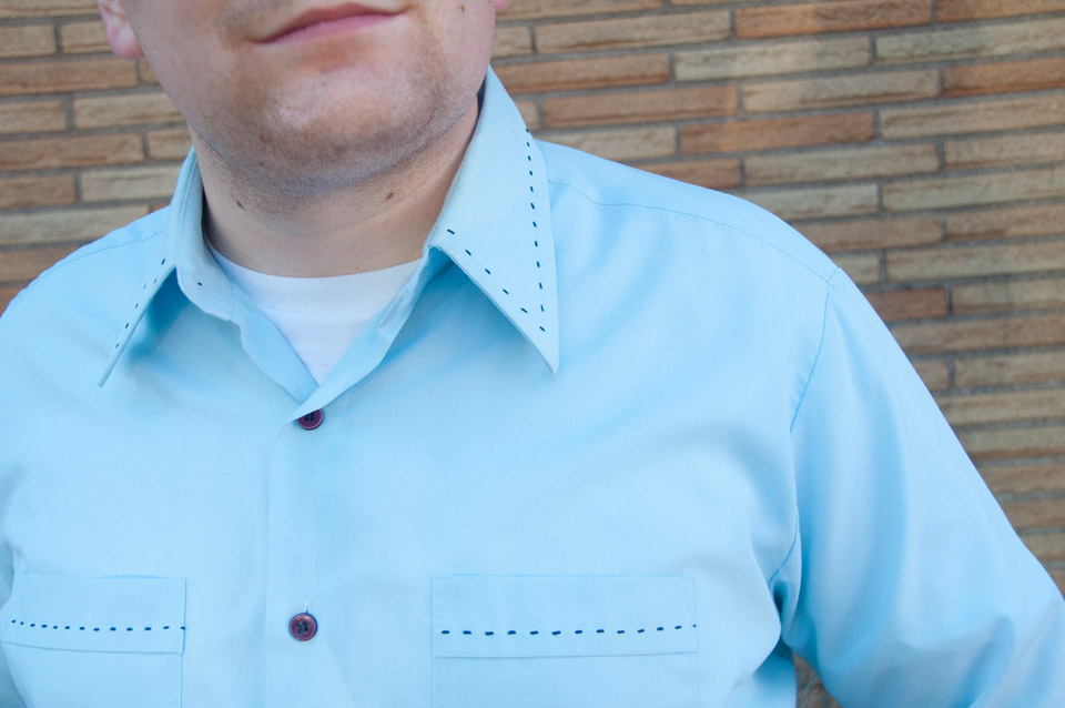 I’ve come to love these 60s button down shirts where the stitching contrasts the fabric. The have a nice loose fit and work well with any pants and jacket. They can be found fairly easily at any vintage clothing store and are usually $35 or less.  I found this one at Elsewhere Vintage in Orange, California.