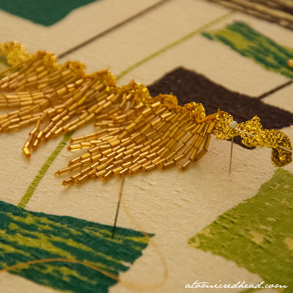 It is looking amazing, I can’t wait to see the end result. If I lived nearby I would offered to pop over and do a few hours of beading for you…we could have a nice ‘stitch n bitch’ alas I live so far away…keep up the great work, take-heart in the knowledge that you’ve come so far already. xx Shauna