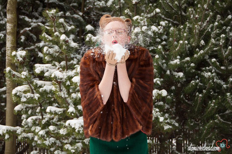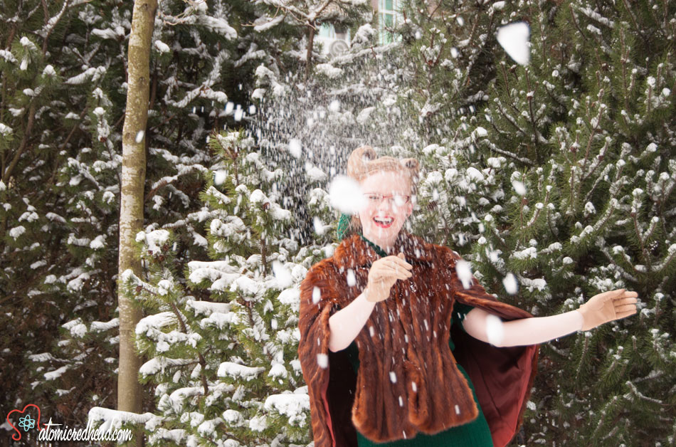 You look stunning! I love the color match between your snood and your dress. It looks like you’re having good fun with the snowy weather.