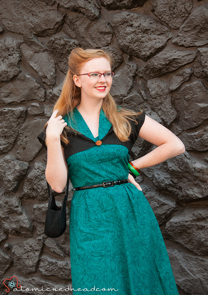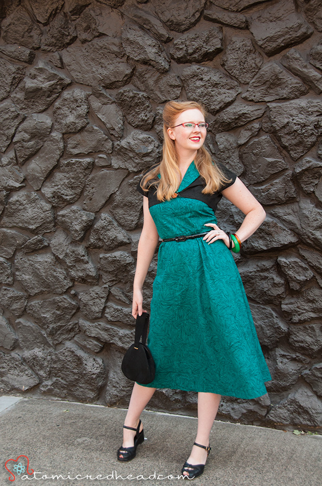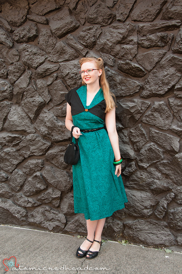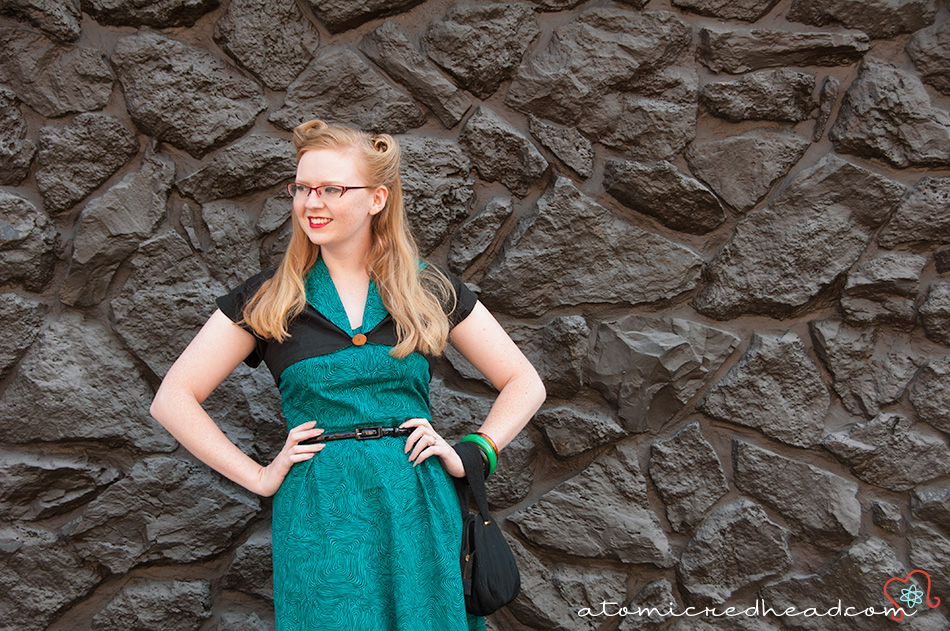 I wore this dress and cross section brooch to Black Lodge Burlesque (a David Lynch themed burlesque show) a few weeks back – the brooch being a homage to the Log Lady of Twin Peaks – but failed to capture the outfit before going out. I felt the outfit was also fitting for going out to Doug Fir, which is a kitchy though also kind of swank restaurant that takes its name and runs with it as a theme throughout the restaurant. Like Hale Pele, Doug Fir is another Portland institution that I’ll most certainly miss.