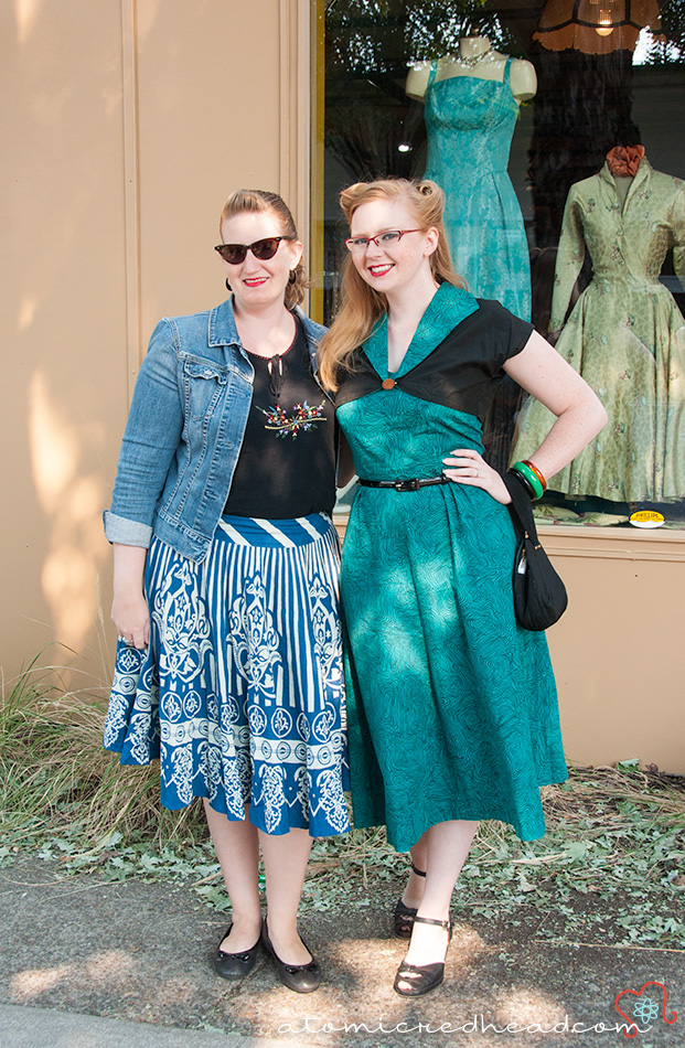 Gorgeous dress! It brings out the radiant tones in your hair something fierce and is such a great silhouette, too. How special that you were able to meet up with your friend again before you switched states.