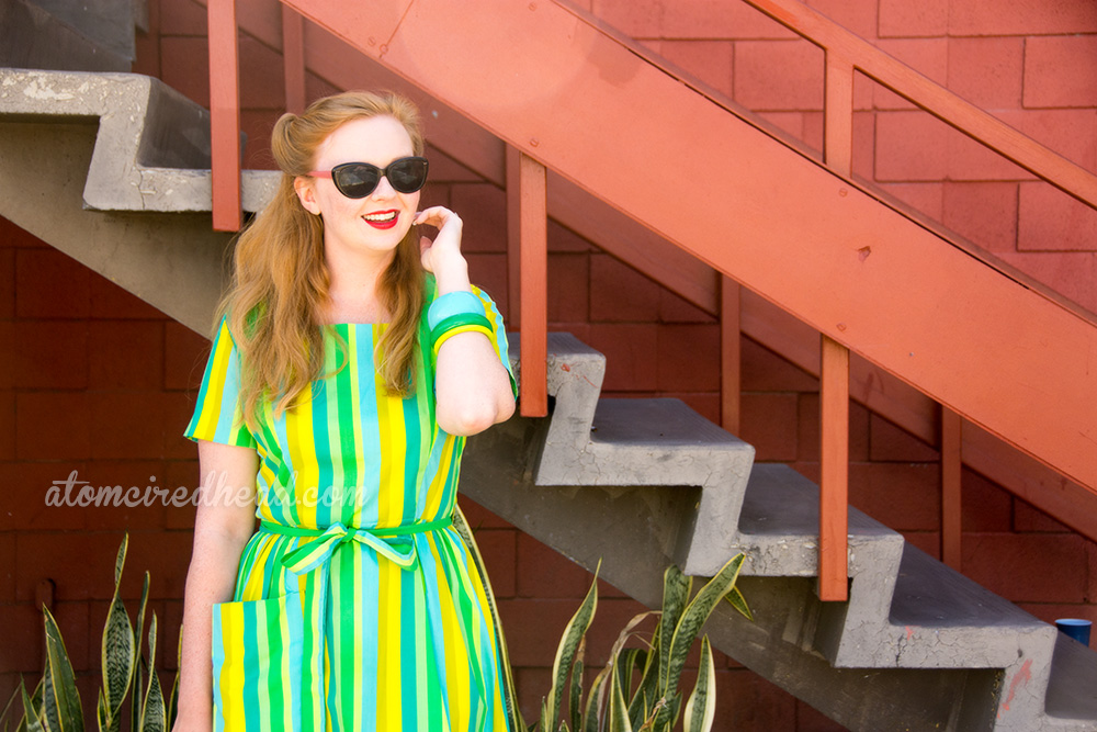 I love the stripes! Great fun colors too, plus you can’t beat Palm Springs for mid-century photo backdrops. I am finding it really hard to find a good striped fabric but it seemed I am seeing striped vintage dresses everywhere and it is only fueling my desire for one of my own!