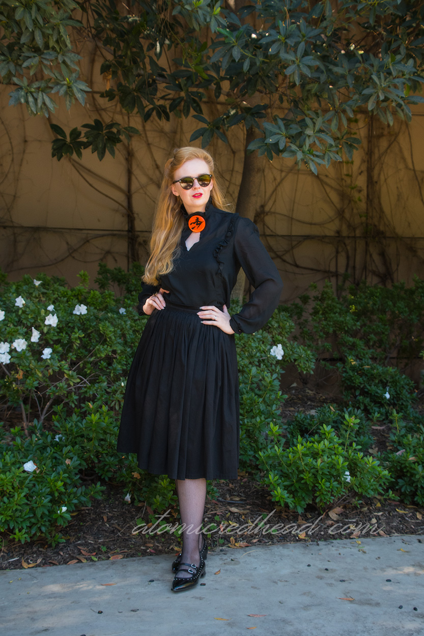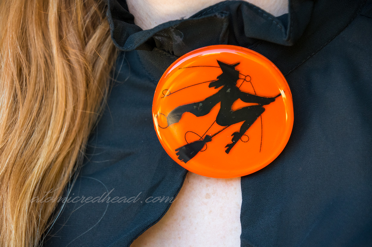 The witch is classic, and reminds me so much of the paper Halloween decorations that we all know and love. It is a perfect and elegant addition to an outfit for any Halloween event.