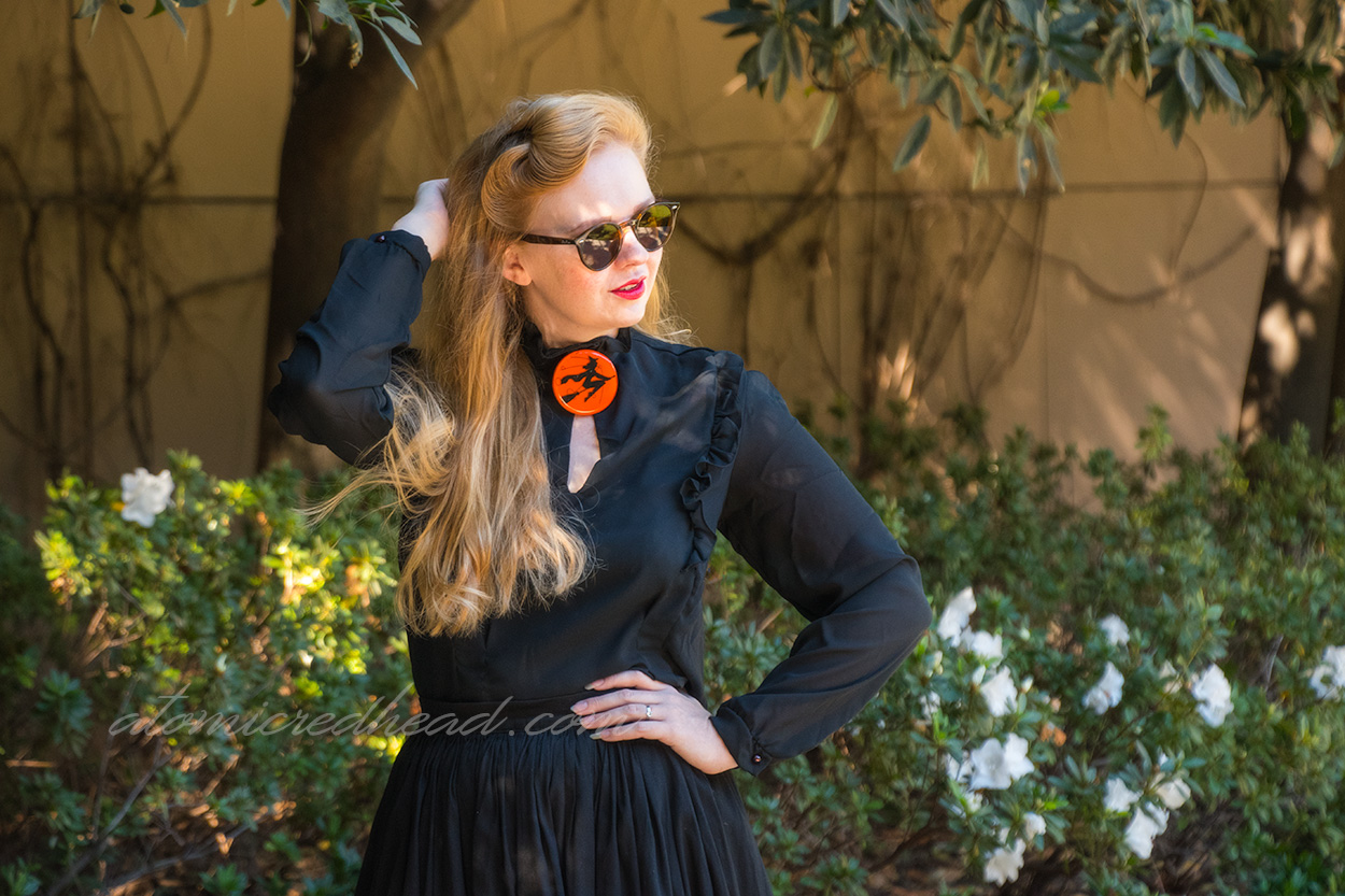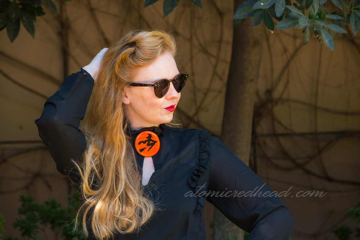 Recently I was contacted by Daisy Jean Floral Designs to review new items from their stellar Halloween collection. Now, I’m always on the hunt for new Halloween themed jewelry, so I was super excited to take a look at their collection. I selected the “Witch’s Flight” brooch, and the “Winged Accomplice” brooch from the collection.