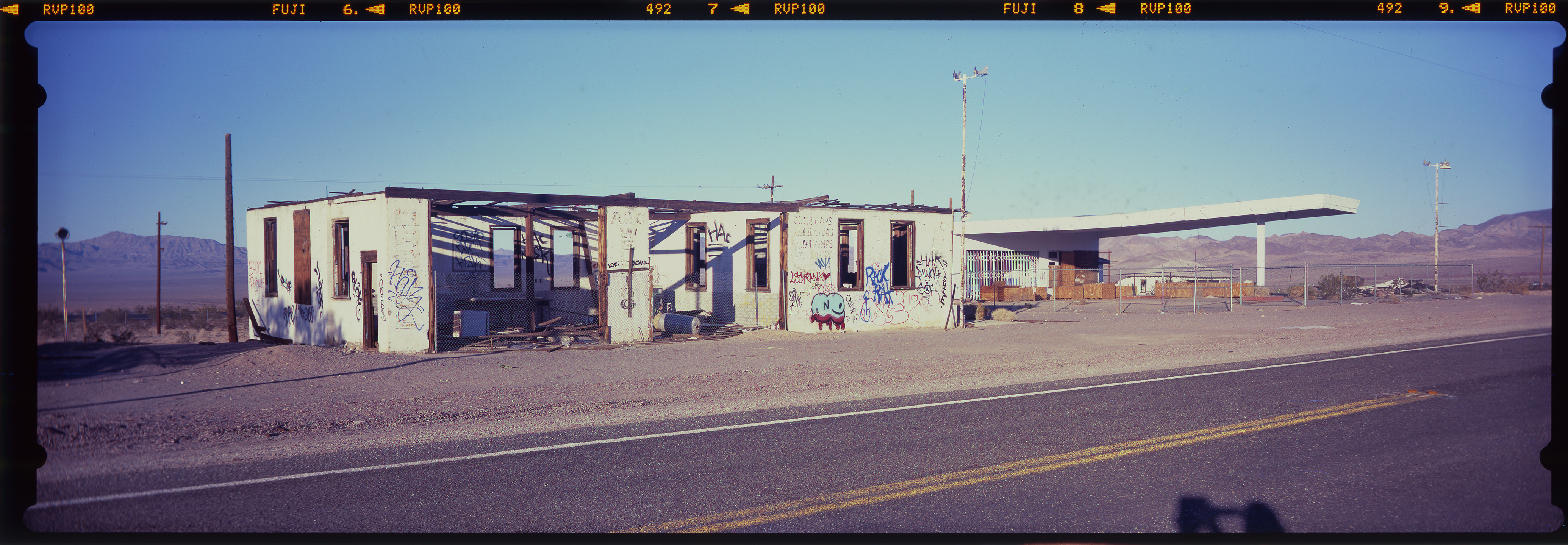 Two additional features I really like over shooting digitally are the ability to move and tilt the lens relative to the film. This allows for shots of buildings straight on that don’t show a lot of ground like the photo of the florist or the Anaheim Packing House or to shift something slightly in the frame like getting the Joshua tree exactly in the center of the ruined building. You can also achieve a blurry “tilt shift” effect where only part of the photo is in focus like in the Arby’s or the Bowl signs because the lens can swing forwards or backwards throwing the focus off, this is the original inspiration for Instagram’s “tilt shift” effect.